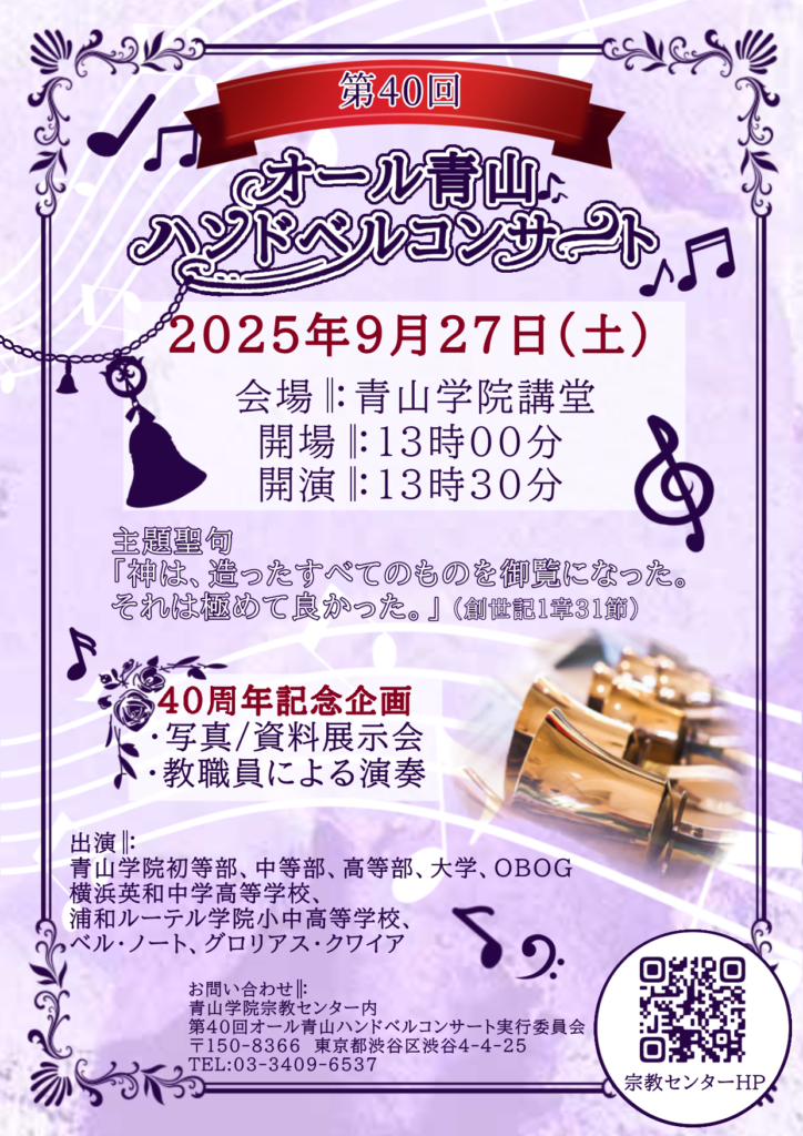 また、40回目を記念し、教職員ハンドベルチームによる演奏や特別展示を行います。