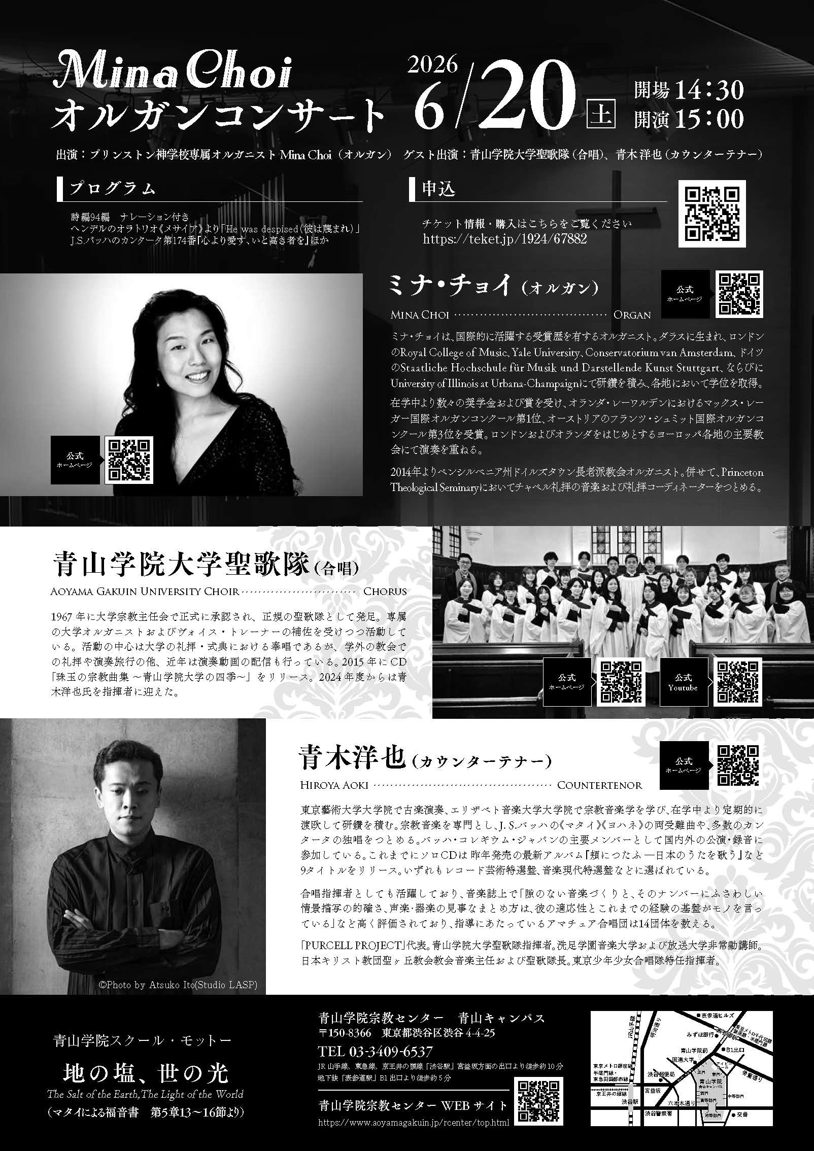 出演:プリンストン神学校専属オルガニスト Mina Choi (オルガン)