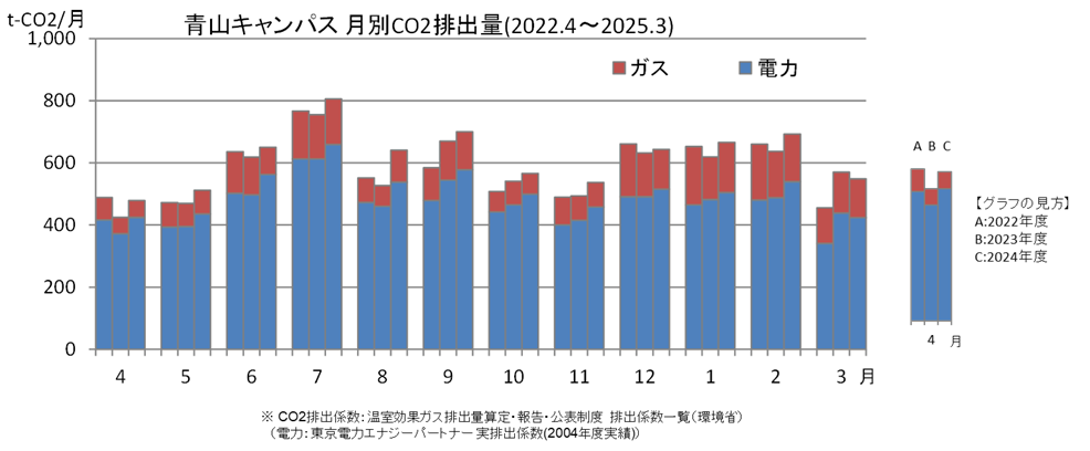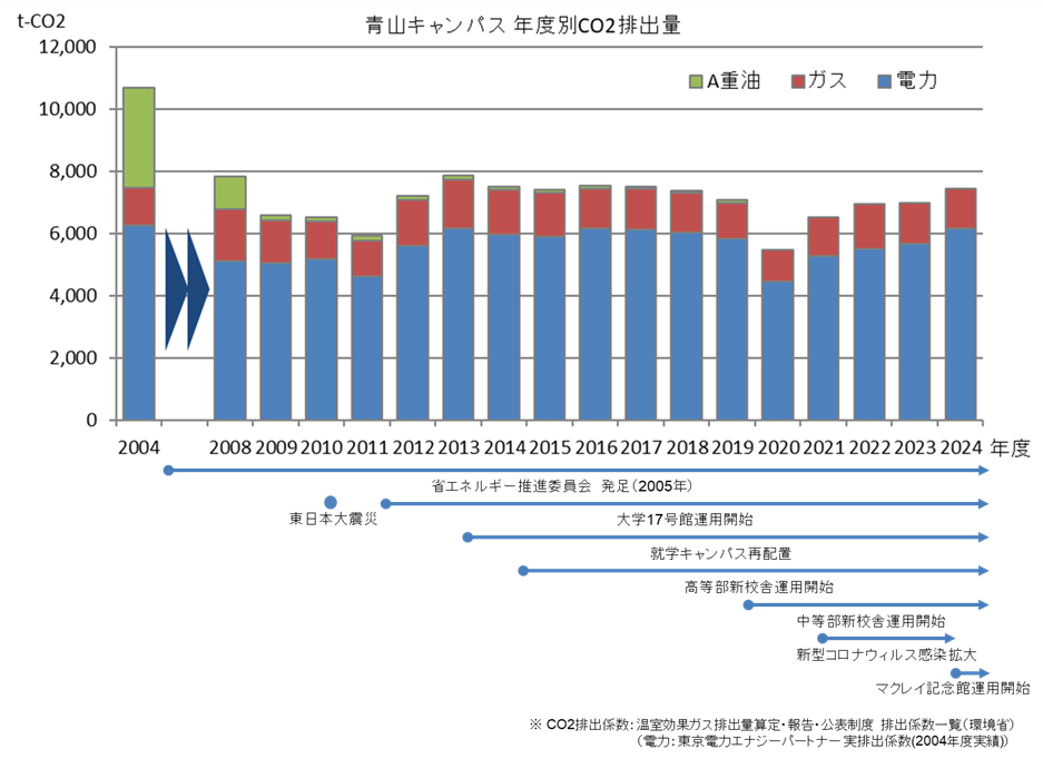 青山キャンパスのCO2排出量の推移