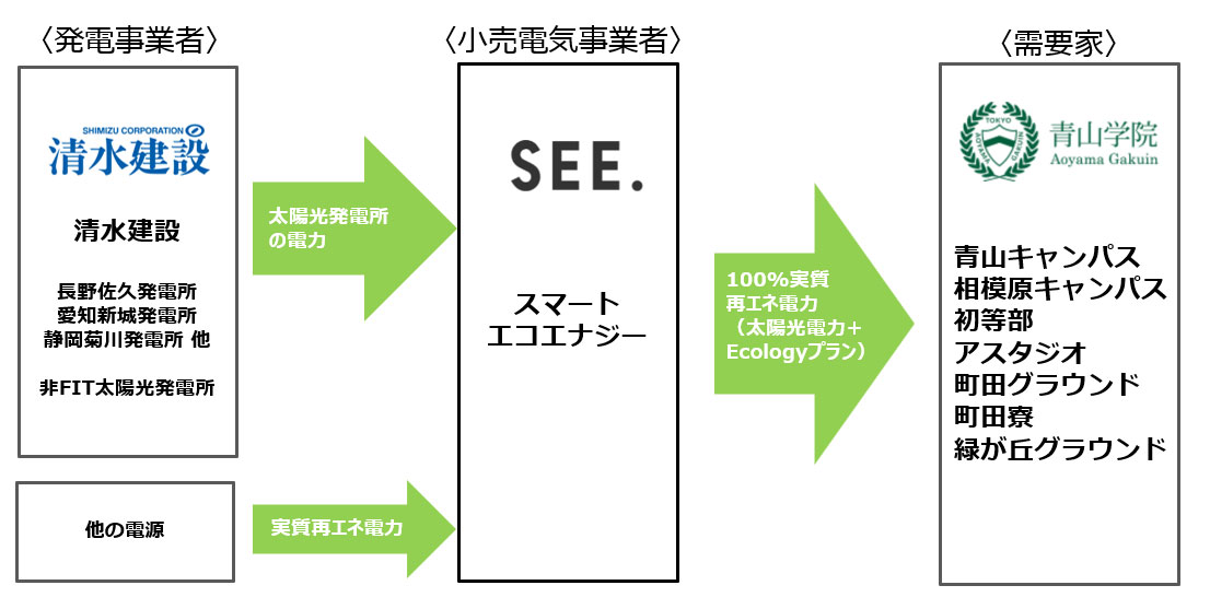 実質再エネ電力」を組み合わせて青山学院の全施設へ供給します。